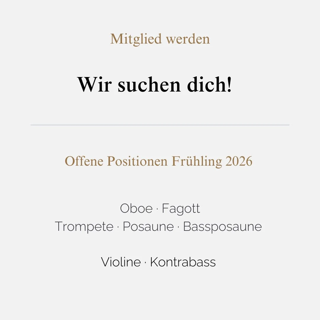 Hättest du Spass daran, die Musik mit uns zu teilen und Teil des AOZ zu werden? Dann melde dich noch heute bei uns zum Vorspielen. Immer wieder sind Positionen neu zu besetzen. Wir freuen uns auf dich!